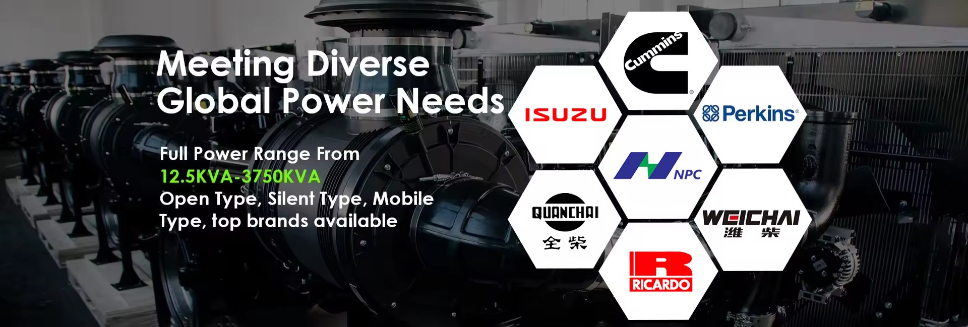 Main categories: Diesel Generator Set, Water Cooled Generator Set, Gasoline Generator Set, Dual Fuel Generator Set, LPG Generator Set